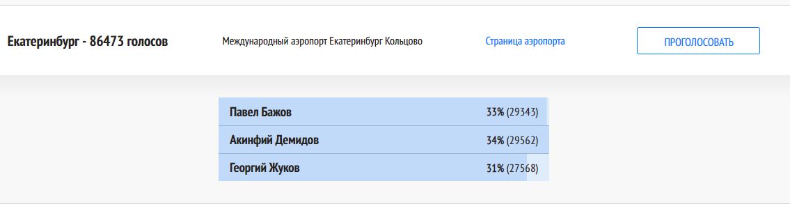 Четвертый этап голосования по выбору имени для аэропорта Кольцово завершится завтра, 30 ноября, а официальные итоги конкурса подведут 5 декабря.