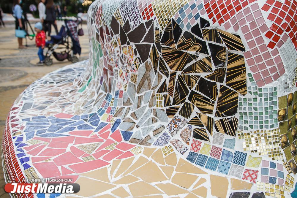 Прежде чем войти в школу, гости изучили стенд с проектом фасада и корта здания, который также планируется обновить. Далее директор МБОУ СОШ 106 Марина Полякова провела экскурсию по двору, где разместили игровую зону, площадку для физических упражнений, построили ротонду, а также установили большие часы, показывающие время мировых столиц. Фантазийные скамейки, уложенные битой плиткой - особая гордость дизайнера, работающего над проектом школы. По ее словам, она вдохновлялась работами Гауди в Барселоне. Отдельного внимания заслуживает арт-объект прямо в центре двора: его название пока не придумали.