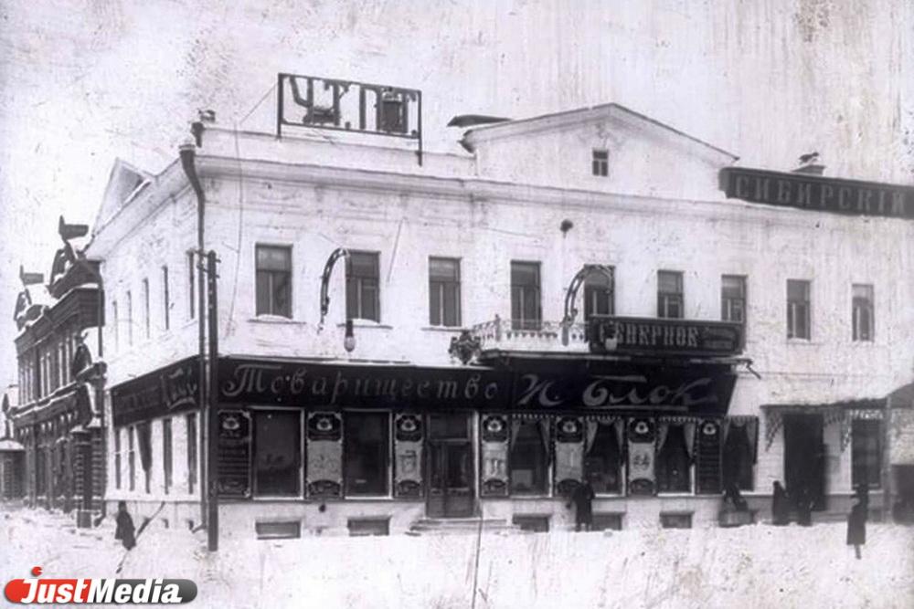 В начале 1910-х годов на первом этаже здания располагался операционный зал Сибирского торгового банк, магазины «Ж. Блок» и товарищества «Ионов и Алин», на втором — Уральское технико-промышленное товарищество. В 1911 году в нем работал один из видных уральских большевиков, возглавлявший в то время Екатеринбургский городской комитет РСДРП(б), Сергей Черепанов, он же «Лука». Именно сюда шли из Парижа письма с указаниями Владимира Ленина и марксистская литература.