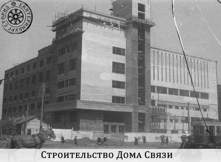 Так мы постепенно подобрались к периоду строительства Свердловского Дома Связи, которое началось в 1930 году. Еще в 1929 году был утвержден проект московского архитектора Касьяна Ивановича Соломонова. Согласно замыслу проекта, аналогично московскому предшественнику Свердловский Дом Связи должен был сосредоточить под своей крышей: Областное Управление Связи, областное представительство Центропечати, главный почтамт, городской телеграф, автоматическую телефонную станцию, междугороднюю телефонную станцию, бюро контроля перевозок, подразделения Свердловского техникума связи, учебный комбинат и ясли для детей работников связи. Есть сведения, что внутри здания был размещен радиотеатр на 800 мест. В те годы такая централизация и уплотнение служб считалось рациональным.