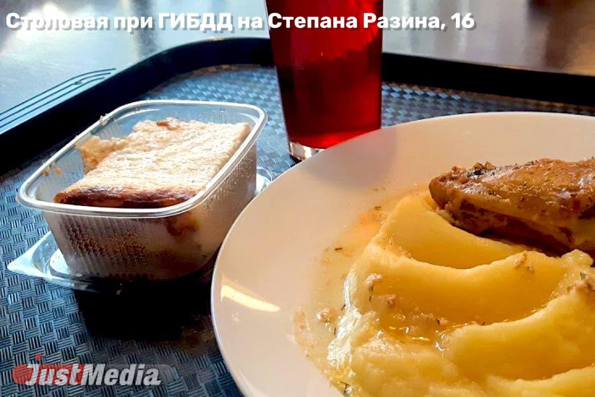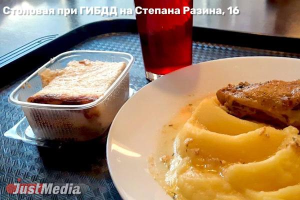 Первой стала столовая при ГИБДД на Степана Разина, 16. Кормят тут по принципу: дешево и сердито. Ассортимент блюд простой и понятный. На гарнир: пюре (54 рубля), гречка (44₽), макароны (42₽), есть булгур с овощами (47₽), который скорее выглядит как плов без мяса. К гарнирам предлагают горбушу под сыром за 142₽, куриный шницель - 149₽, запеченные бедра - 139₽ и зразы куриные с яйцом - 139₽. Среди мясных блюд только курица и рыба, говядины или свинины нет. Из интересного - сырный суп и суп с фасолью, также можно купить выпечку, творожную запеканку и витаминный салат. Из напитков - разные компоты.