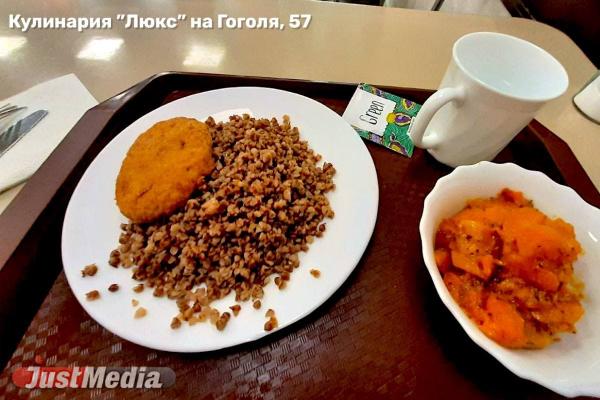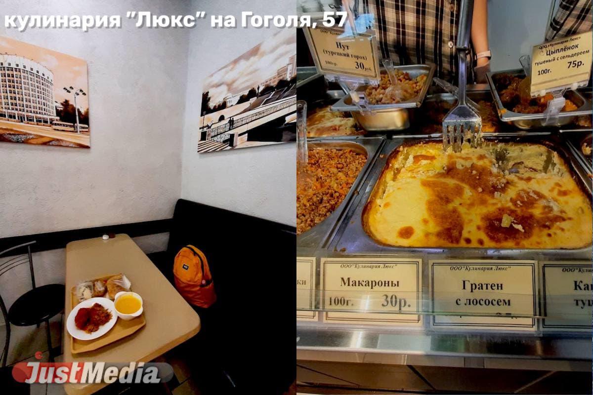 Следующей стала кулинария «Люкс» на Гоголя, 57. Здесь обычно многолюдно, но очередь движется быстро - на раздаче две сотрудницы и кассы тоже две. Еды много, на любой вкус - от тушеной капусты и плова до гратена с лососем и запеканки из индейки. Кипяток наливаем самостоятельно из термопода в центре, там же стоит микроволновка, если требуется что-нибудь подогреть.