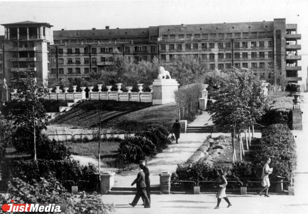 Перед «Большим Уралом» разбили красивый сквер с фонтаном, вазонами и скульптурами львов. ФОТО: ГАСО