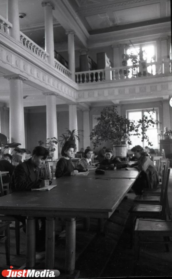 «Если смотреть на главный корпус со стороны Софьи Ковалевской, то увидим еще один условно парадный портик. Это конструировалось для библиотеки Уральского индустриального института (эту надпись на УПИ заменят только в 1948 году — прим. ред.). Это был последний элемент главного корпуса. Правда, фасад со стороны Софьи Ковалевской долгое время был не отштукатурен и выглядел непарадно», — говорит Евгений Бурденков.