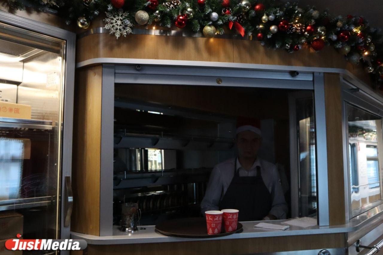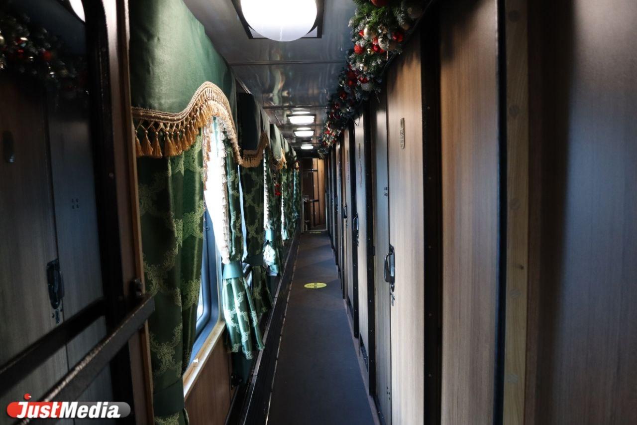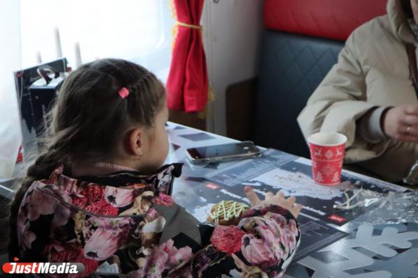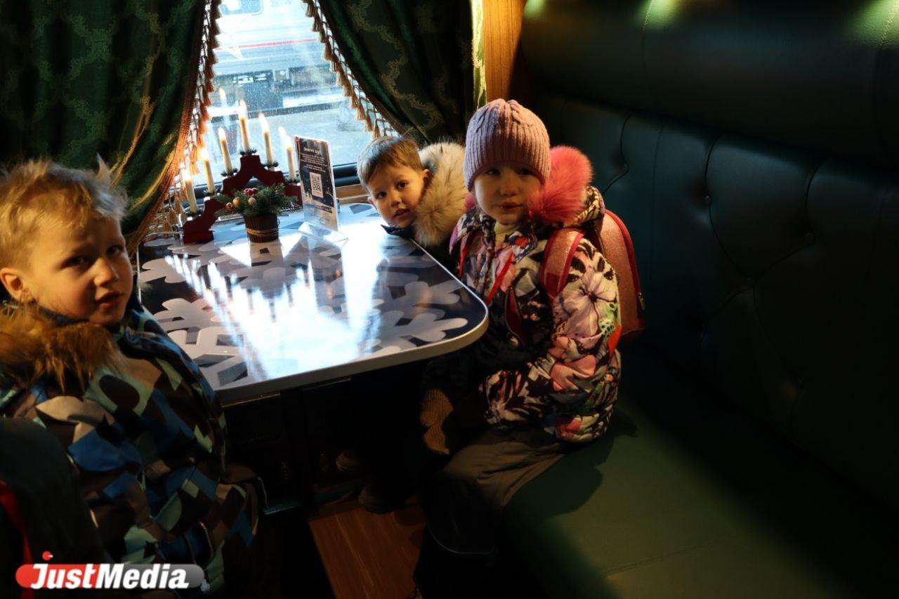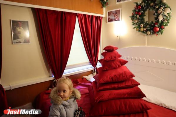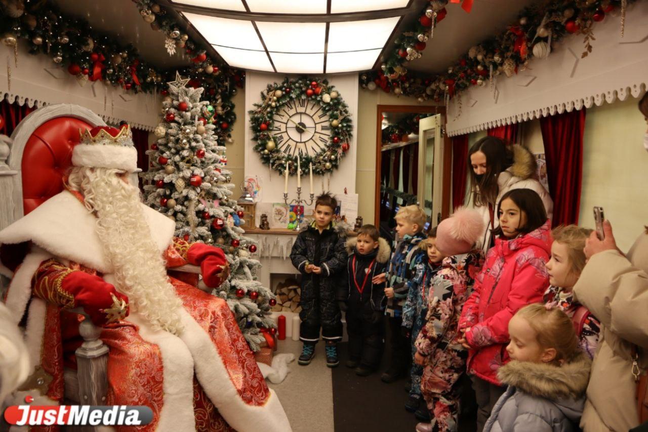 Сегодня в 9 утра в Екатеринбург под новогоднюю музыку и под радостные крики детей прибыл поезд Деда Мороза, который пробудет в городе до 18:00. В честь этого прямо на перроне весь день детей развлекают аниматоры: игры, песни, пляски. Дети и их родители также могут посетить бесплатные вагоны: сувенирную лавку «Лавка Сказок», вагон-кафе и ретро-вагон. Также все желающие могут сфотографироваться с северным оленем. Те же, кто успел купить билеты (а их раскупили очень быстро), смогут побывать в вагоне Деда Мороза. Корреспонденту JustMedia.ru выпала возможность посетить вагон волшебника. Поэтому в этом материале вы увидите, как происходила встреча маленьких екатеринбуржцев с Дедом Морозом.