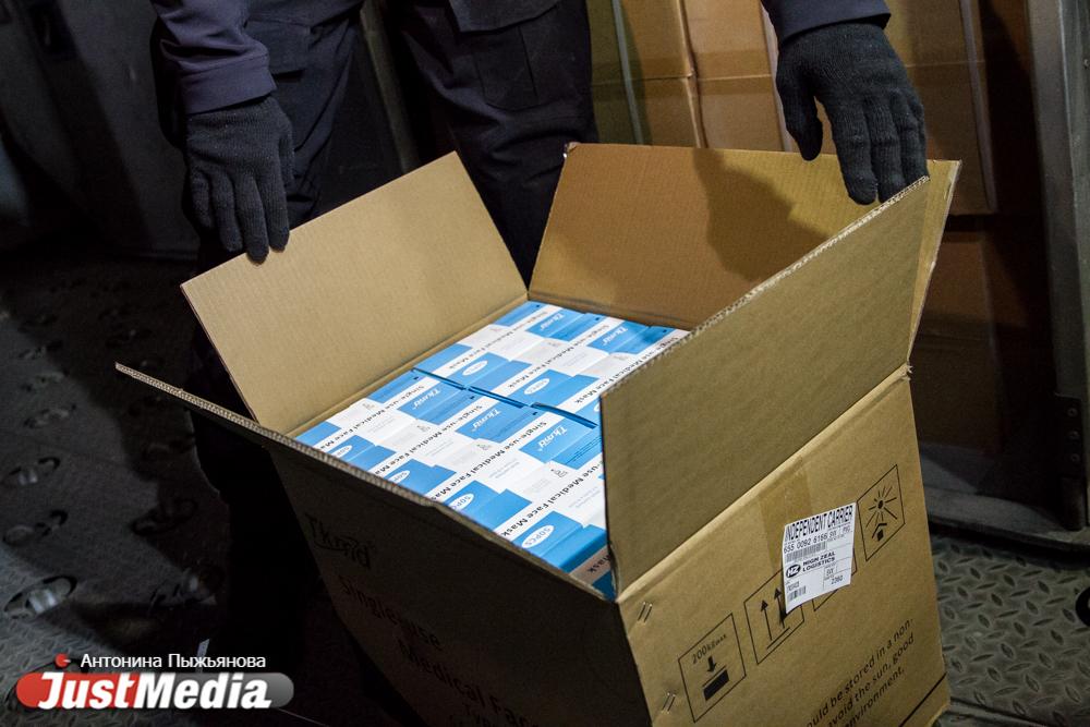 Всего в столицу Урала на этой неделе должны доставить свыше 100 тонн гуманитарного груза: 10 млн медицинских масок, 100 тысяч масок спецзащиты и 10 тысяч хирургических масок, 150 тысяч медицинских костюмов, 304 тысяч пар медицинских перчаток, 20 тысяч лицевых щитков, 20 тысяч защитных очков и 1 тысячу термометров. Это закроет потребности сразу двух регионов – Свердловскойи Челябинской областей.