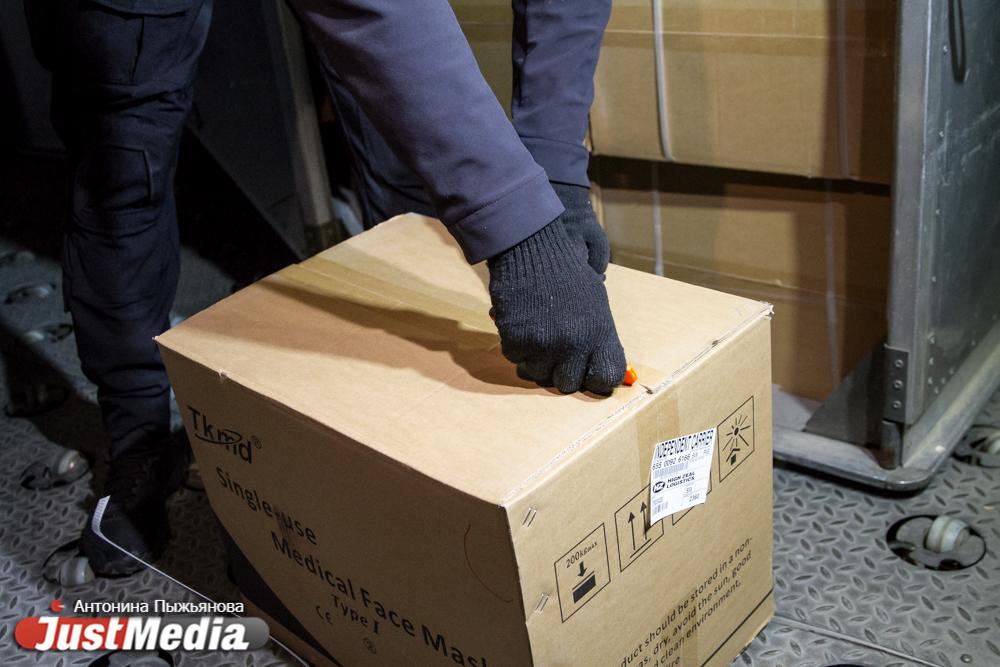 В Екатеринбург сегодня утром прилетела крупная партия гуманитарного груза из Китая. Первый из четырех самолетов доставил в Кольцово 27 тонн средств спецзащиты: 3 миллиона индивидуальных медицинских масок, 300 тысяч перчаток, 40 тысяч защитных костюмов и 6 тысяч очков. Сегодня же этот груз дойдет до всех медучреждений Свердловской и Челябинской областей. Остатки дойдут до Урала в конце этой недели, передает корреспондент JustMedia.ru.