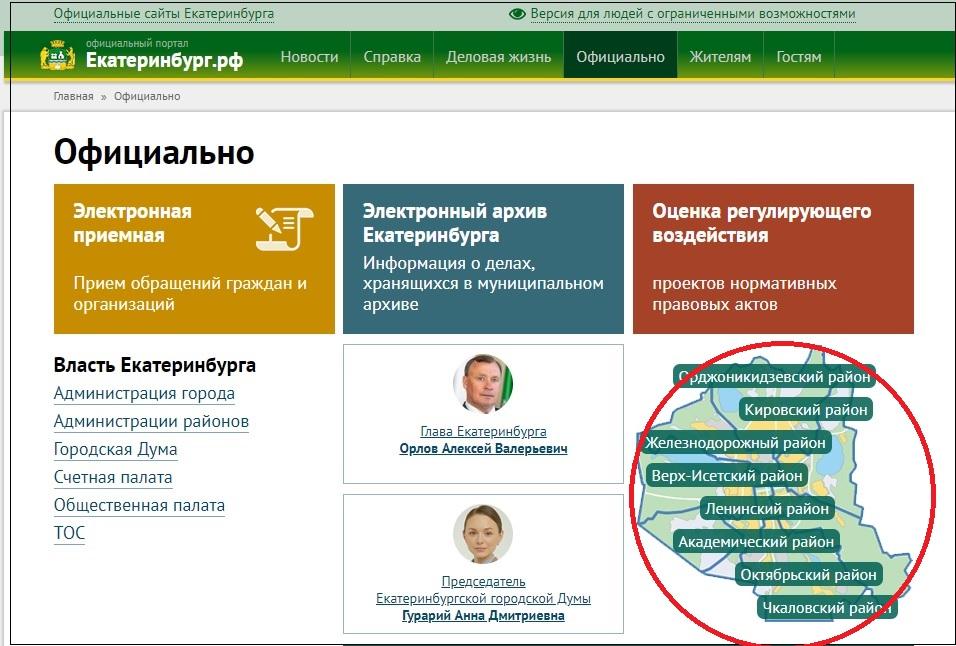 —установить на главной странице «Муниципалитет» - «Муниципальное образование «город Екатеринбург»;