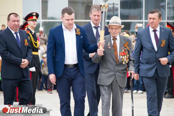 Вечный огонь на отремонтированном мемориале зажег участник Великой Отечественной войны Василий Пономарев. Ветеран боевых действий прибыл на церемонию на легендарном автомобиле «Победа» ГАЗ-М20Б и доставил факел, пламя в котором появилось после плавления металла в печи цеха «Уралэлектромеди» - предприятия, в годы войны называвшееся Пышминский медеэлектролитный завод. После зажжения Вечного огня Василий Пономарев поздравил ветеранов Великой Отечественной войны и тружеников тыла с Днем Победы.