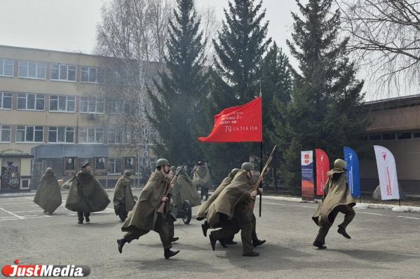 Перед церемонией награждения кадеты корпуса представили реконструкцию эпизодов времен Великой Отечественной войны. Помимо зарисовки боев собравшиеся увидели момент поднятия флага над рейхстагом и полюбовались вальсом Победы.