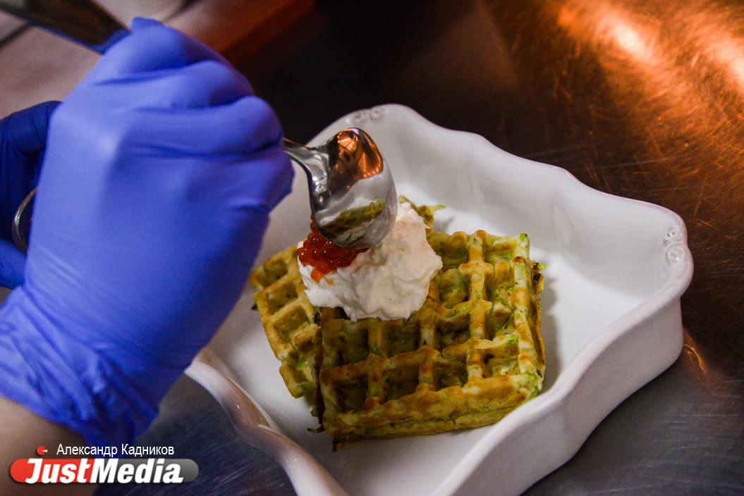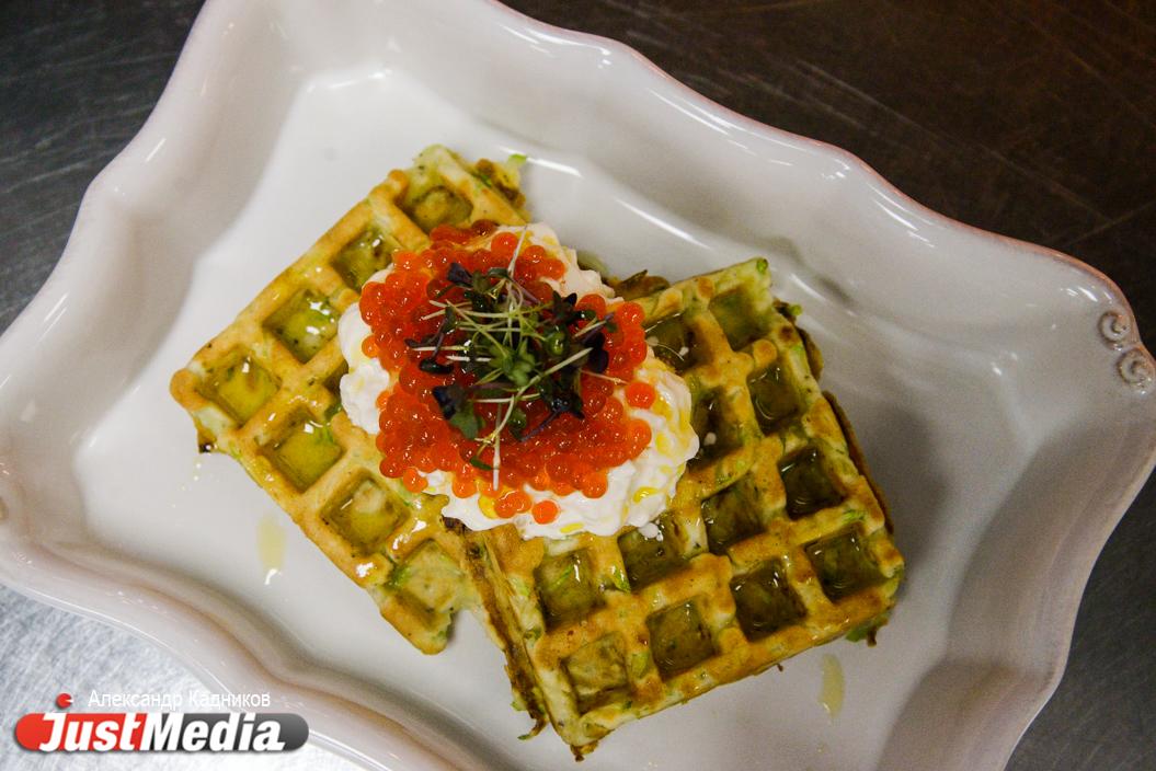 «Это крутой аналог уже приевшимся всем оладьям. Немного сладковатые из-за кабачка вафли, сливочный сыр и соленая икра – все это делает вкус блюда очень гармоничным, а сочетание сыра с такими вафлями греет душу», – считает Бова.