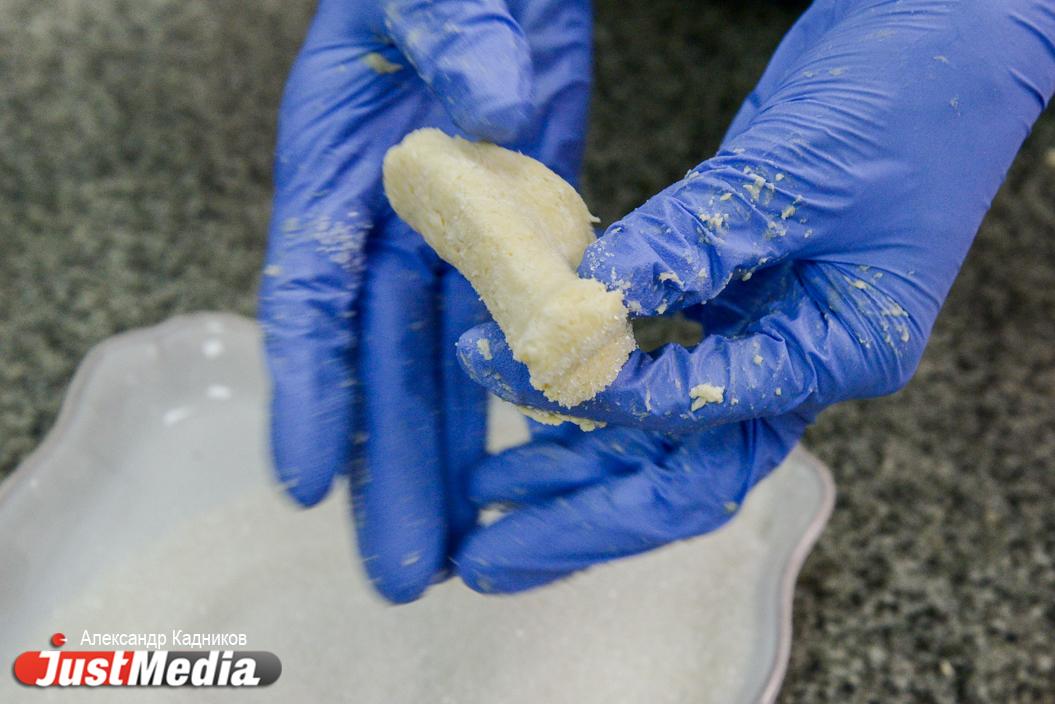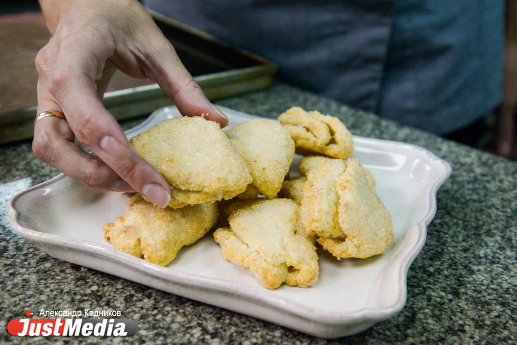 «Печенье должно получиться белым, а не золотистыми. Как-то раз мы сделали их слишком золотистыми – Наина Иосифовна сразу поправила нас (улыбается)», – советует брен-шеф ресторанов ЕЦ.