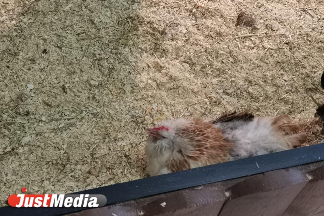 В жару, как мне показалось, животным очень нелегко. Многие животные лежали тяжело дыша. Одна курица вообще странно открывала клюв, как будто пытаясь заглотить больше воздуха. Зрелище жуткое. Но работница зоопарка уверила, что для них намного страшней холод, а в жару им хорошо. Кормят животных по расписанию, но в выходные из-за большого числа гостей в ужине постояльцам отказывают. Корм, который покупают посетители при входе, по словам сотрудницы зоопарка, для животных как десерт, переедание от этого у них не случится.