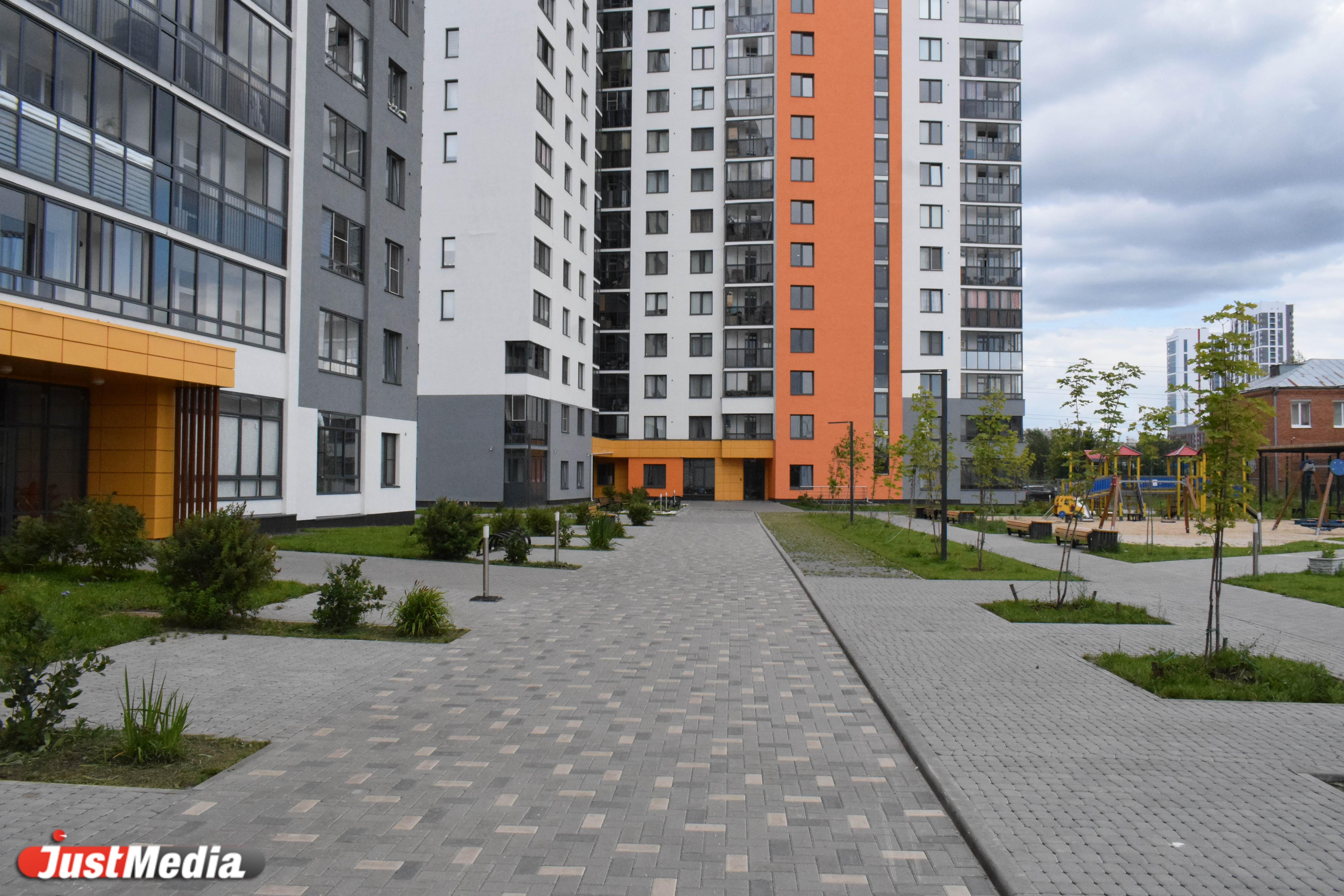 Дизайнеры очень старались сделать бетонные коробки не скучными, поэтому намешали в расцветку домов сразу три цвета – белый, серый и оранжевый, дополнительно разбавив их оттенками. Из плюсов стоит отметить выходы из первых этажей «в пол»; неплохие по стилю, но не самые широкие холлы. И, к сожалению, остается чувство, что местами в доме все выглядит все еще как только после ремонта.