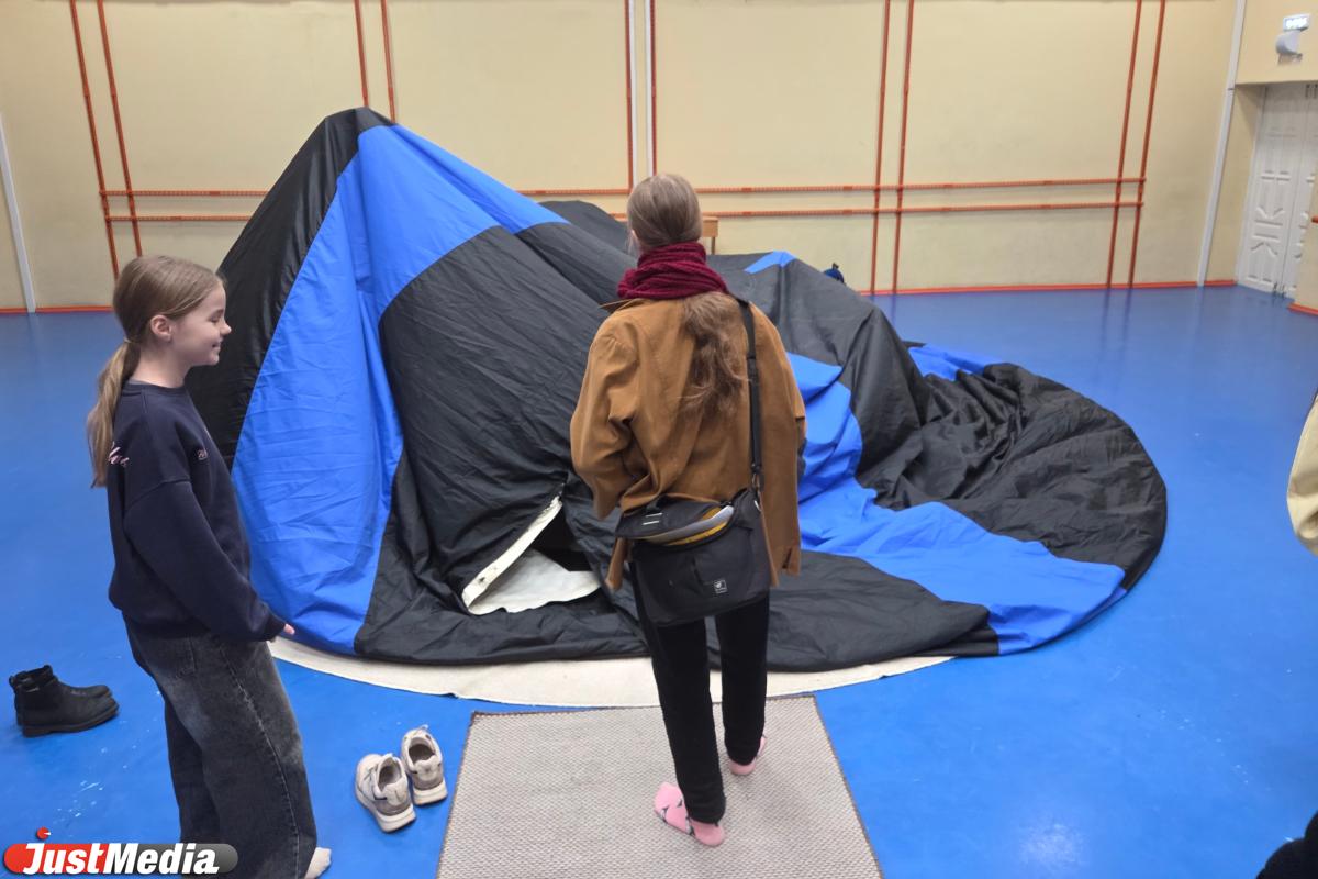 Журналистам законы физики не писаны, и наш коллега случайно сдувает купол. Оператор оставляет вход в «палатку» открытым, что нарушает циркуляцию воздуха. Благо купол сдувается медленно, и дети не кричат в ужасе, а смеются. Через пять минут купол надувают вновь.