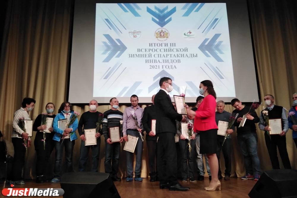 В областном центре реабилитации инвалидов торжественно поздравили победителей III Всероссийской зимней Спартакиады инвалидов 2021 года. Спортсмены Свердловской области заняли первое место в командном зачете. Соревнования проходили в Красноярске с 1 по 7 марта.