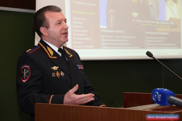 Начальник ГУ МВД области встретился со студентами академии госслужбы.