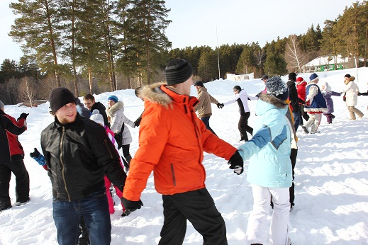 Мужчины также приняли участие в старинной русской забаве — бое стенкой на стенку и взятии снежного городка.
