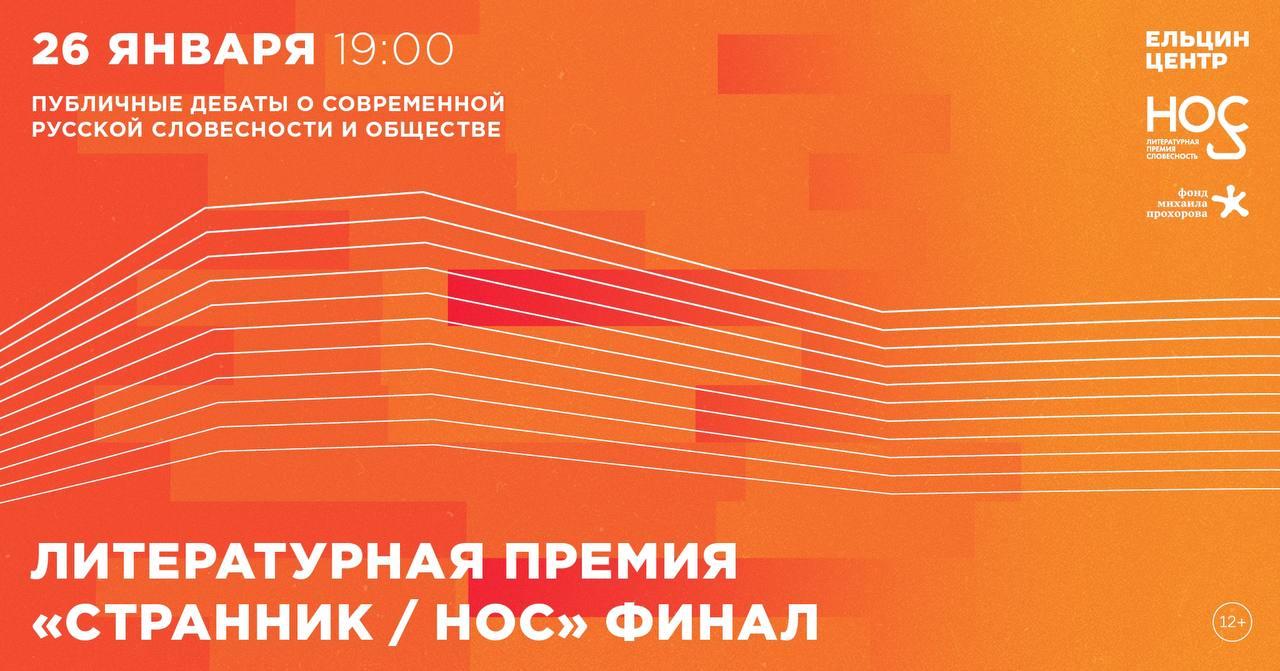 В Ельцин Центре пройдет публичные дебаты, в результате которых будут объявлены лауреаты региональной литературной премии «Странник НОС». Это единственная в России литературная премия, жюри которой обсуждают свой выбор публично. Гостей ждет увлекательная литературная дискуссия и обсуждение книг, номинированных на премию.