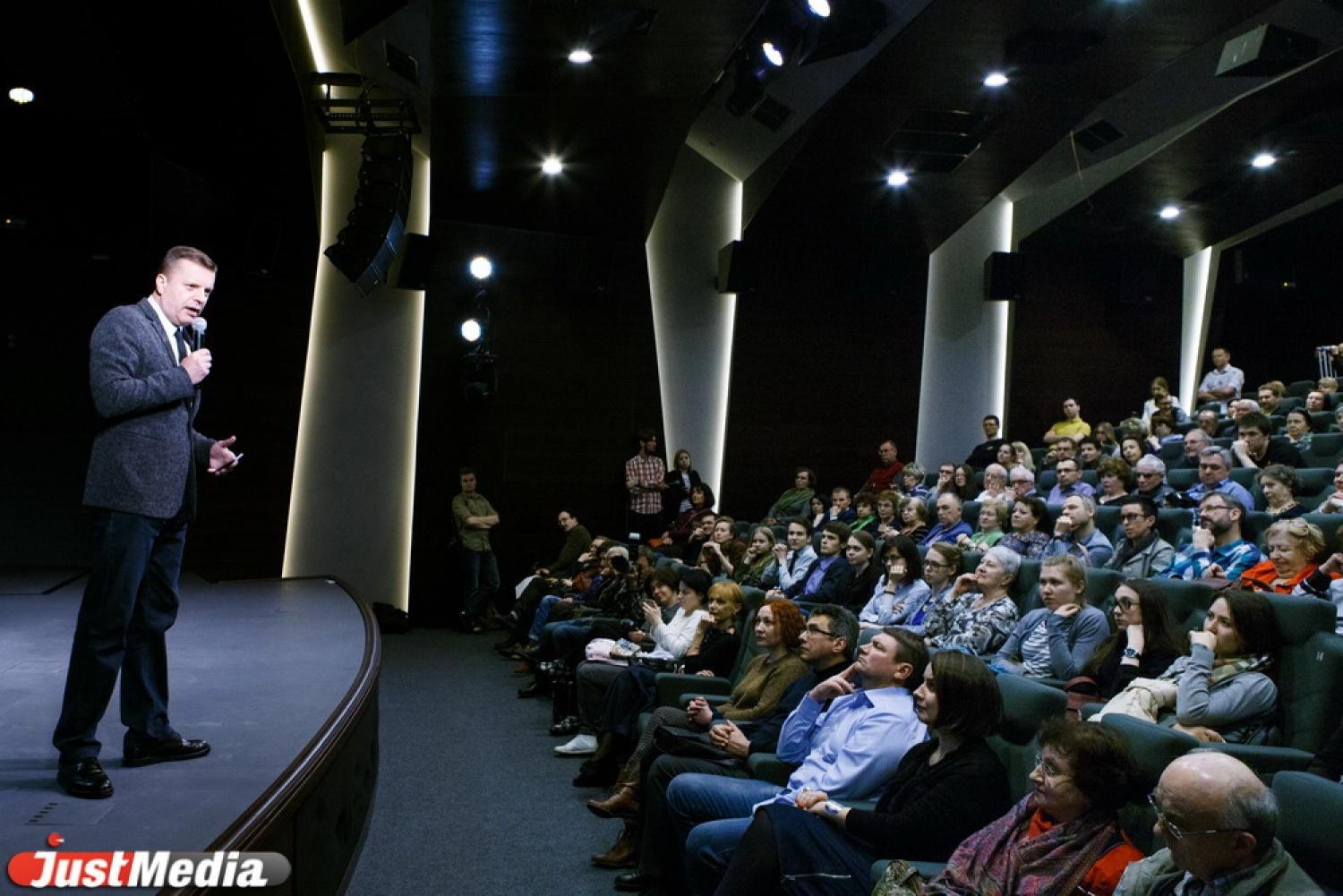 После показа известный журналист пообщался со зрителями и подписал свои книги.
