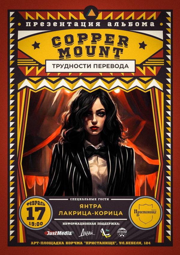 «Ироничные песни, чудоковатые персонажи от Николы Теслы до парня, застрявшего во френдзоне, винтажный звук и концертный драйв — это все про нас», — отмечают участники группы Copper Mount.