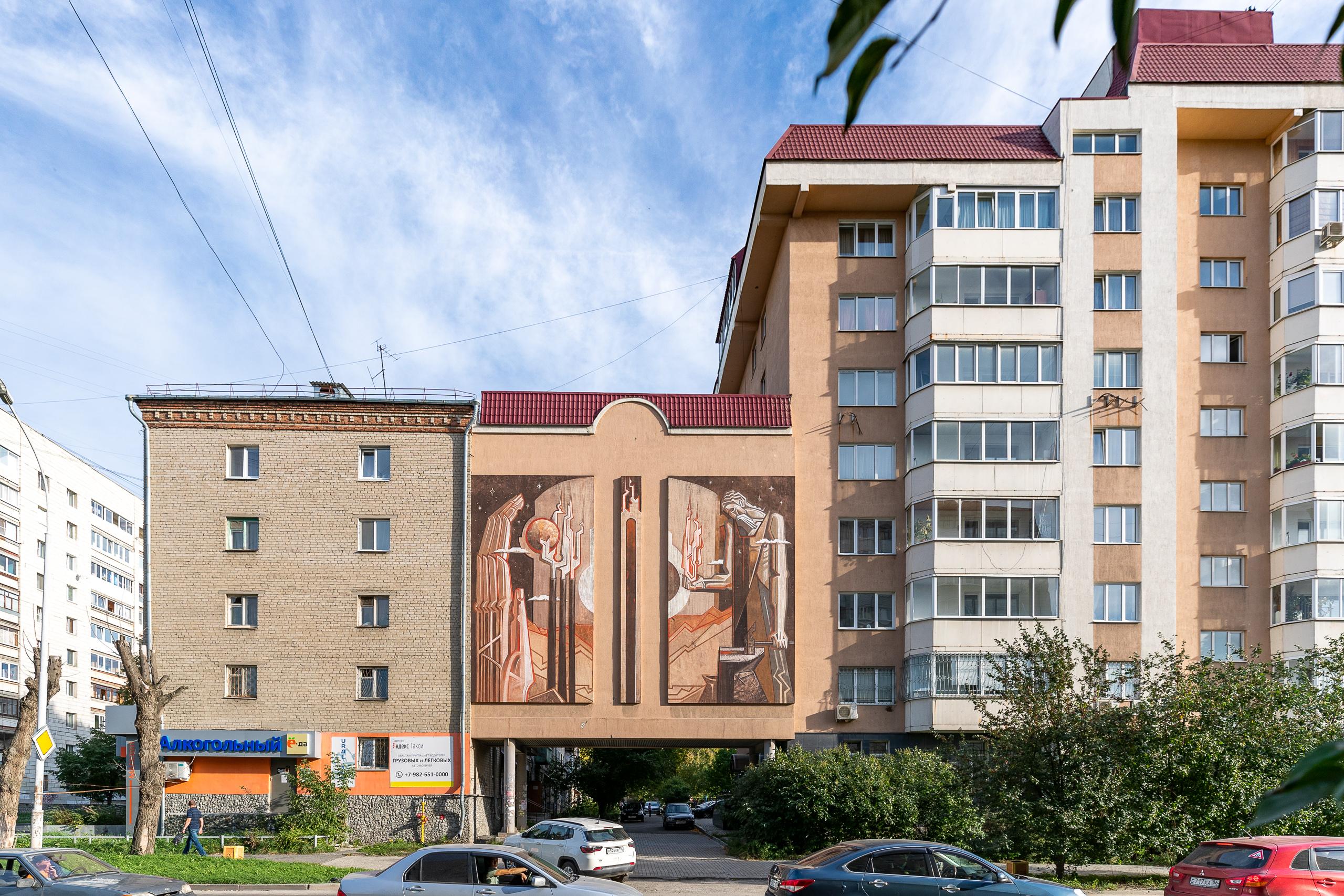 В Екатеринбурге на стене дома художник-монументалист Кирилл Ведерников нарисовал искусного кузнеца Гефеста. Образ мифического персонажа стал аллегорией уральской индустриальной культуры. Новый арт-объект фестиваля «Стенограффия» расположен на Красных Командиров, 16.