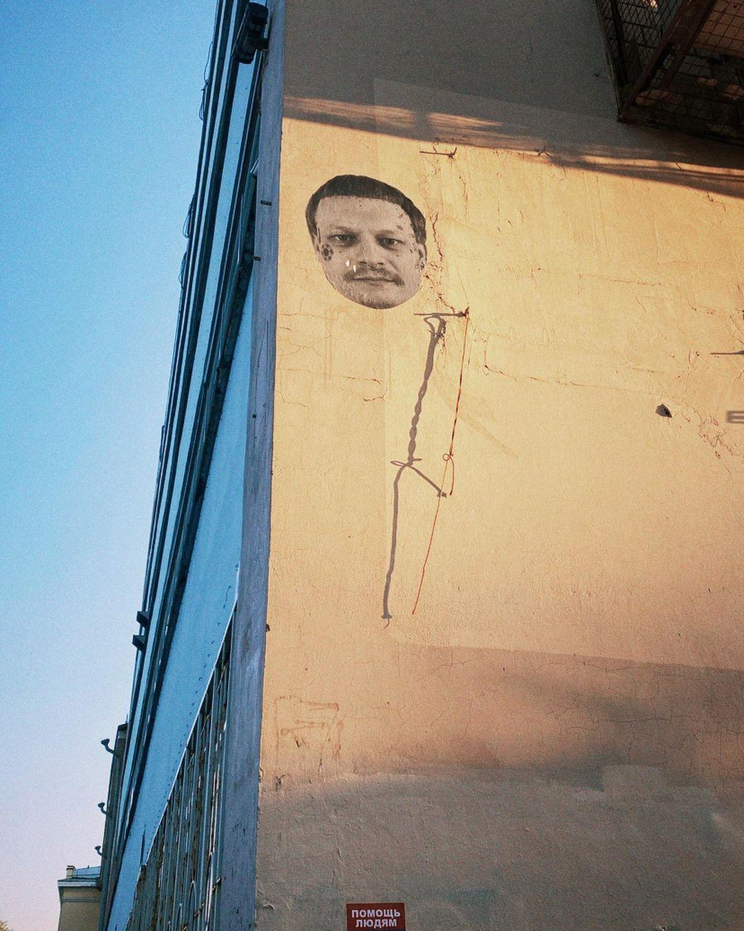 Мужчина на странных постерах – художник и музыкант из Санкт-Петербурга Виктор Забуга. В разговоре с JustMedia.ru он сообщил, что работы созданы в рамках партизанского фестиваля стрит-арта «Карт Бланш». По всему городу развешано ровно 30 постеров.
