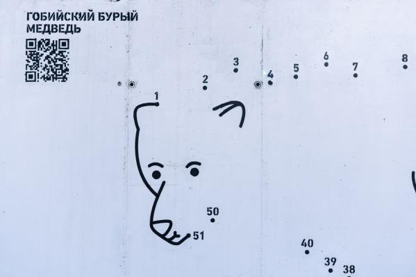 Автор изобразила животных в виде картинок из детских раскрасок, где их контур необходимо собрать по номерам. Количество номеров – количество особей, наименьшее число два – столько на планете осталось белых носорогов. В проекте осталось лишь одно не нарисованное животное – дальневосточный леопард, для которого теперь ищут поверхность.