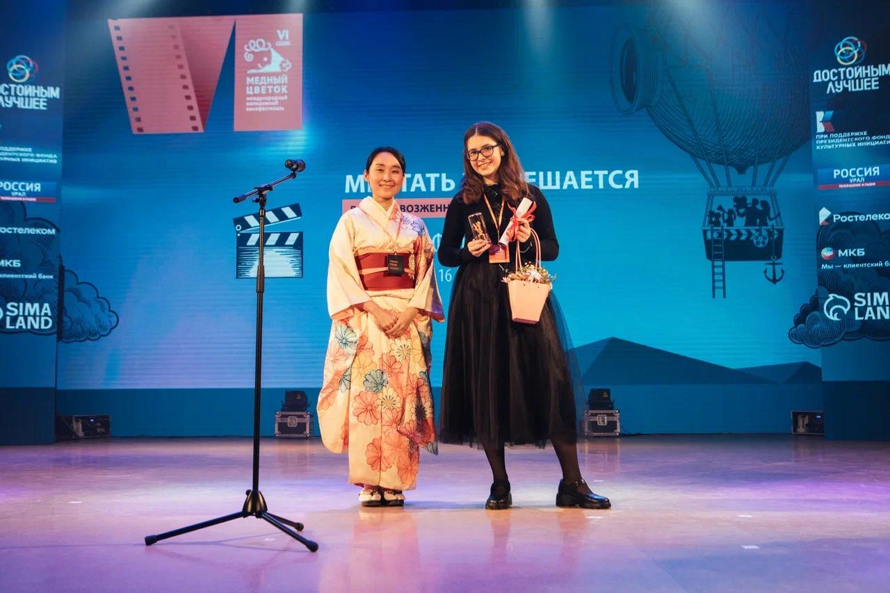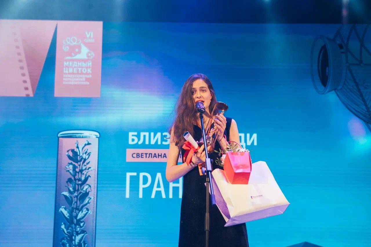 Затем настал черед объявления победителей и вручение главного приза фестиваля – «Медного цветка». Награду получили 11 молодых режиссеров в разных номинациях. Гран-при фестиваля завоевала Светлана Белкина из России с фильмом «Близкие люди» (12+).