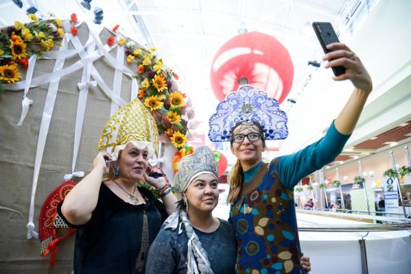 В рамках фестиваля все желающие смогли научиться играть на исконно русских музыкальных инструментах, угоститься вкусным тортом-кокошником и примерить на себя образ русской красавицы.
