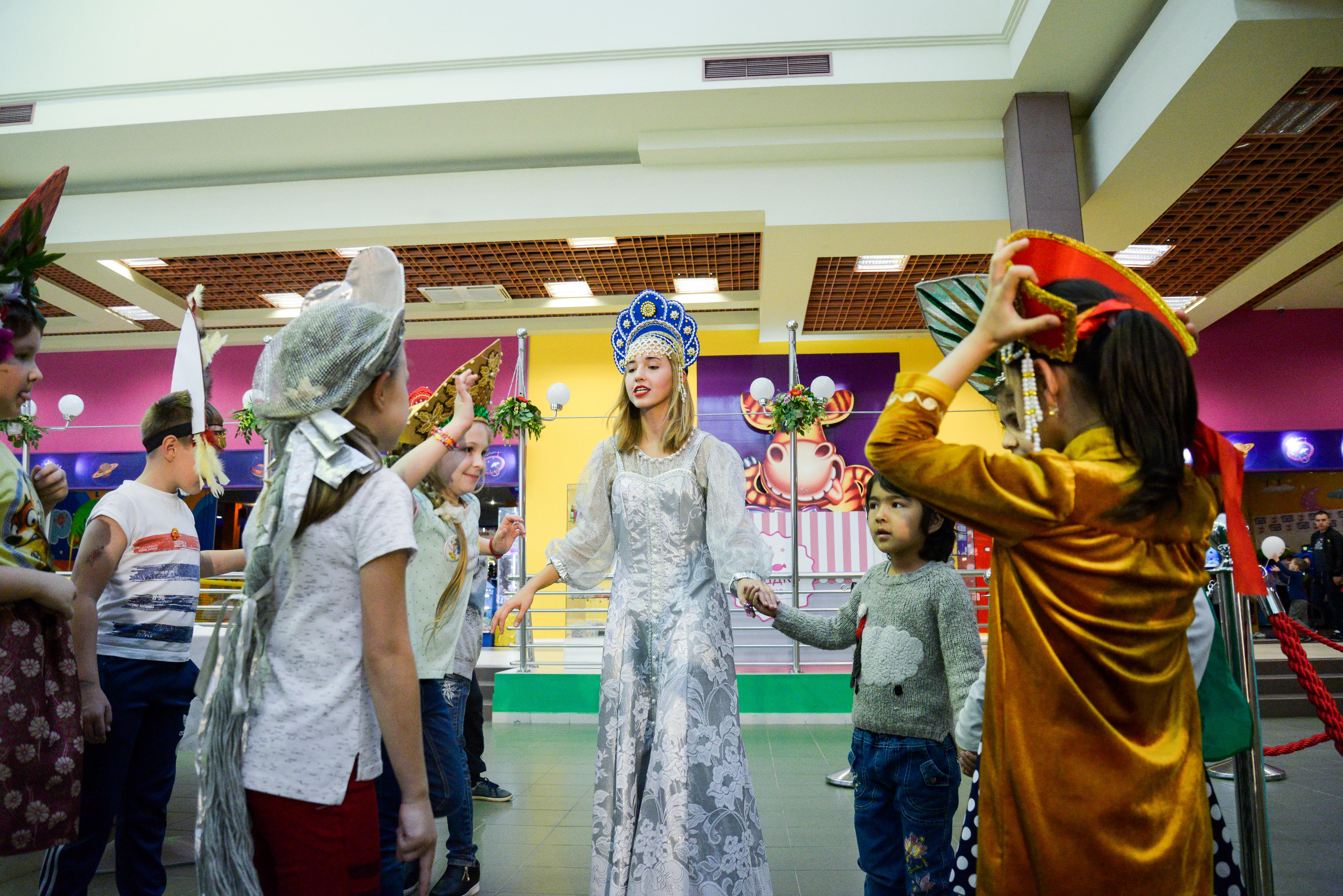 Для гостей торгово-развлекательного центра выступил ансамбль народных инструментов ART-QUINTET, зажигательный дует BaLALAika Style, также гостей развлекали две сказочные красавицы: Василиса Прекрасная и Марья Искусница.