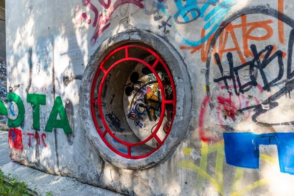В Екатеринбурге художник Андрей Люблинский реализовал необычный арт-проект, украсив стены зданий и дворы города яркими железными конструкциями, которые взаимодействуют с окружением и его несовершенствами. Проект, пока еще не получивший название, реализован в рамках фестиваля «Стенограффия».