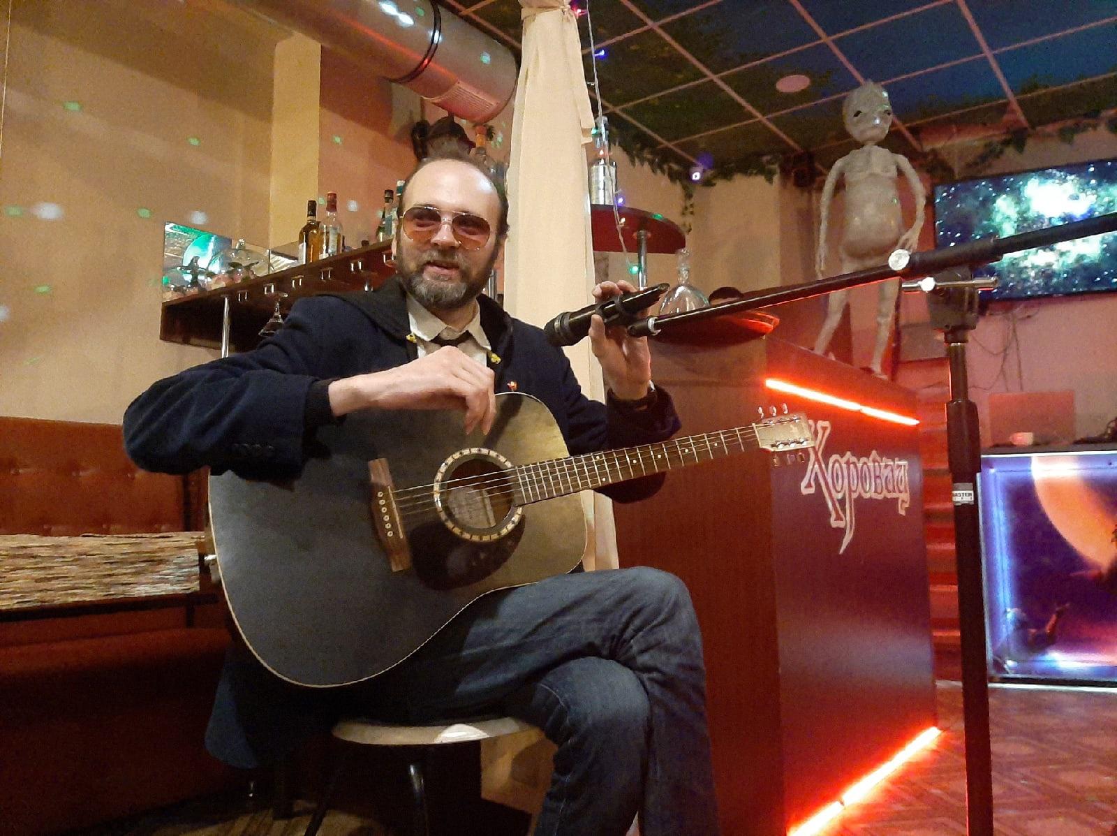 Затем на сцену выходит тот самый гость, что сидел в шапочке из фольги. Оказывается – это музыкант и поэт Генрих Кокман, который сочиняет ироничные и веселые песни о космическом гуманоиде. «Алёша, Алёша, тяжела твоя ноша», – звучат слова под бой гитары и собравшиеся разливаются аплодисментами.