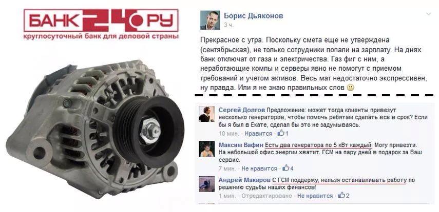 Неравнодушные клиенты уже решились привезти электрогенераторы в офис Банка24.ру.