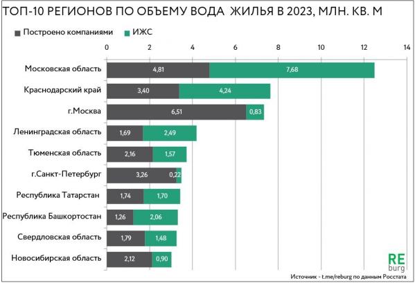 Свердловская область заняла седьмое место в топ-10 регионов России по объему ввода жилья в 2023 году, такие данные приводит руководитель аналитического отдела УПН Михаил Хорьков со ссылкой на статистику Росстата. Так, больше всего — 6,51 млн кв. метров жилья сдали в Москве, 4,81 млн «квадратов» — в Московской области, 3,4 млн кв. метров в Краснодарском крае, 3,26 млн кв. метров — в Санкт-Петербурге и 2,16 млн кв. метров — в Тюменской области. На шестом месте с показателем 2,12 Новосибирская область. И в нашем регионе сдали в прошлом году 1,79 млн кв. метров.