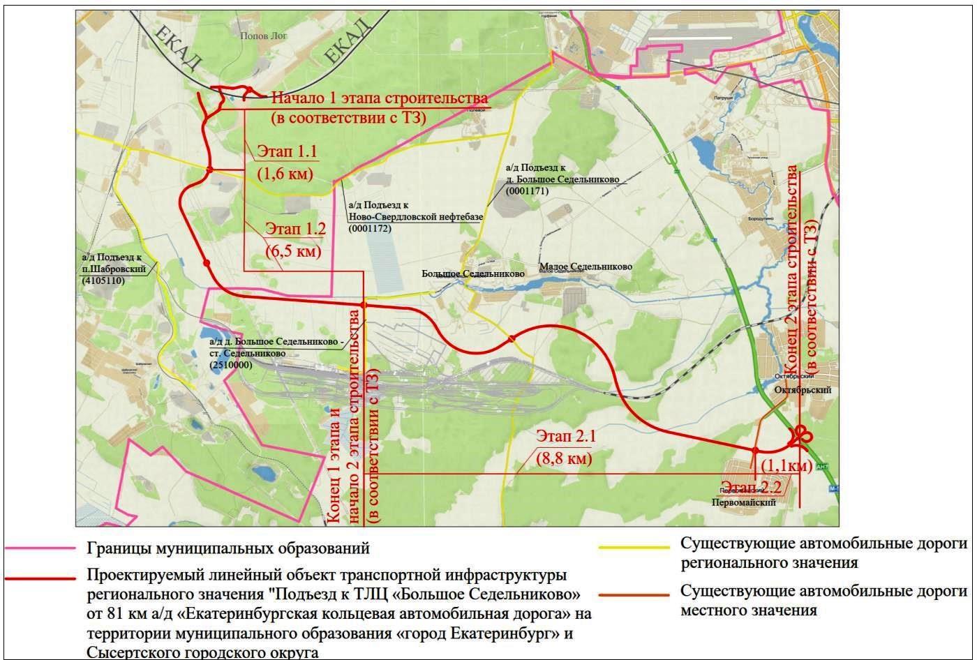 Новый участок трассы свяжет между собой подъезд к Ново-Свердловской нефтебазе с автодорогой «деревня Большое Седельниково – станция Седельниково». Протяжённость этого этапа составит 6,5 километра, а вместе с утверждённым ранее участком общая протяжённость первого этапа строительства составит 8,1 километра.