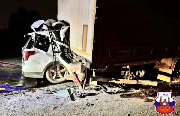 В Екатеринбурге двое мужчина на внедорожнике залетели под грузовик и остались живы