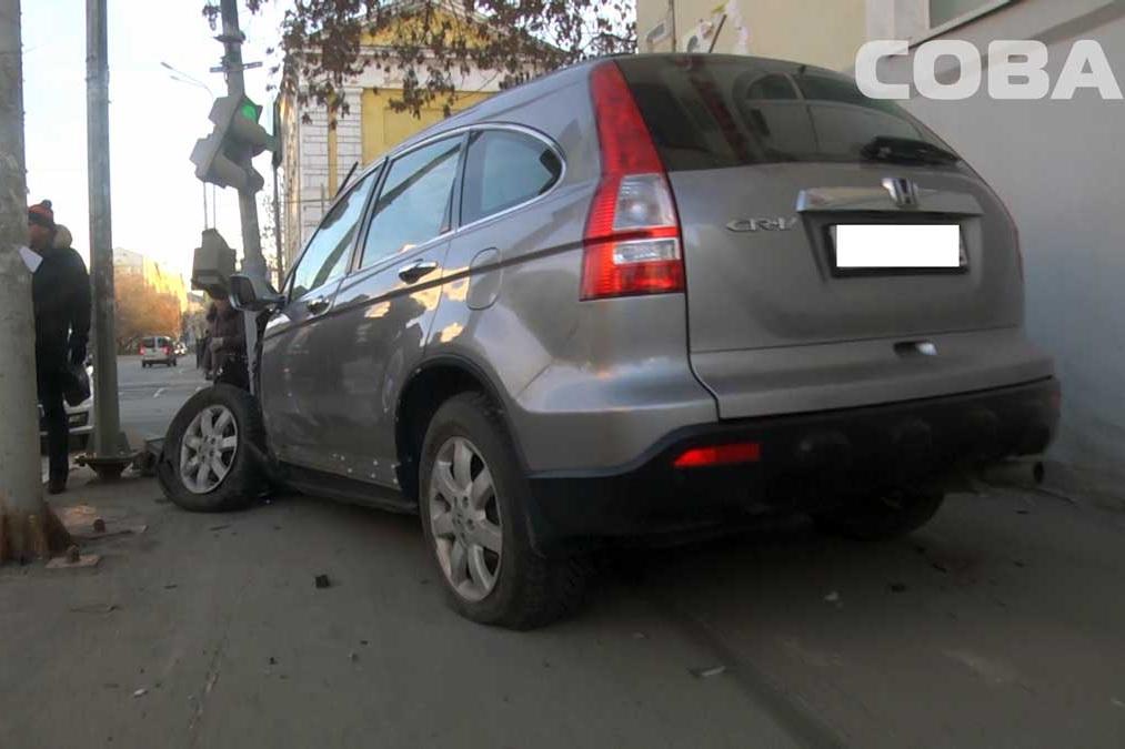 Страшное ДТП с участием пешеходов произошло сегодня утром на перекрестке улиц 8 Марта – Фурманова. В 8:30 Honda CR-V, ехавшая по Фурманова со стороны Сурикова, внезапно вылетела на тротуар, протаранила два дома, сбила трех пешеходов и остановилась, снеся светофор.