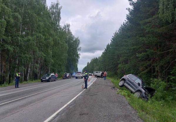По предварительным данным, 62-летняя автоледи за рулем Volkswagen Tiguan на дороге Екатеринбург – Арамиль обгоняла попутный автомобиль по встречке и столкнулась лоб в лоб с УАЗом. После столкновения обе машины улетели в кювет, а колесо кроссовера отлетела в Datsun.