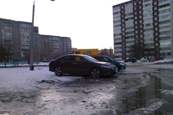 «В течение двух месяцев коммунальщики что-то чинили у нашего дома по адресу: Московская, 214/2 . Сегодня их не видно. С утра двор, в том числе парковку, залило холодной водой», — рассказали JustMedia жители данного дома.