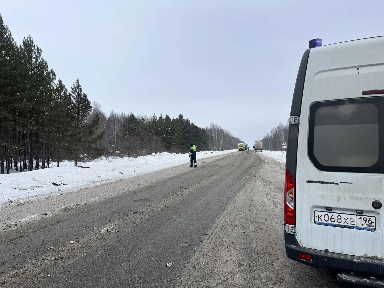 Под Камышловым водитель «Хонды» столкнулся с грузовым «Исудзу». От удара фура съехала в кювет с и перевернулась. В районе аварии введено реверсивное движение. Водителей транспортных средств осматривают медики.