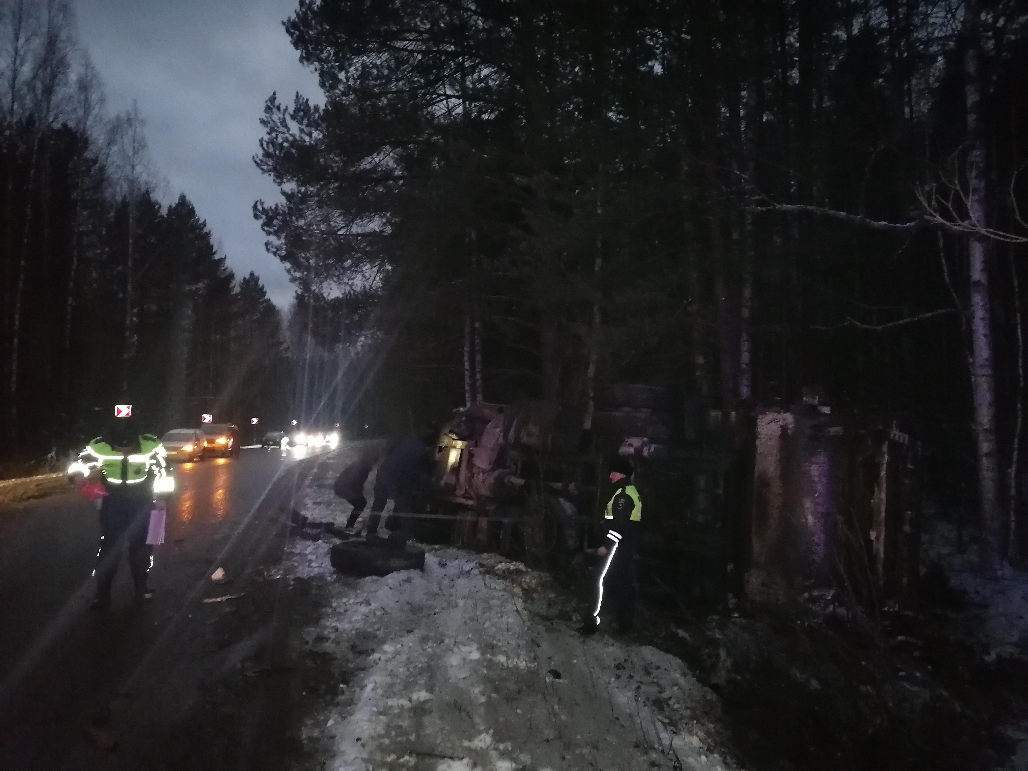 По предварительным данным, женщина-водитель «Киа» превысила скорость, не справилась с управлением и вылетела на встречную полосу. После столкновения грузовик перевернулся и улетел в кювет.