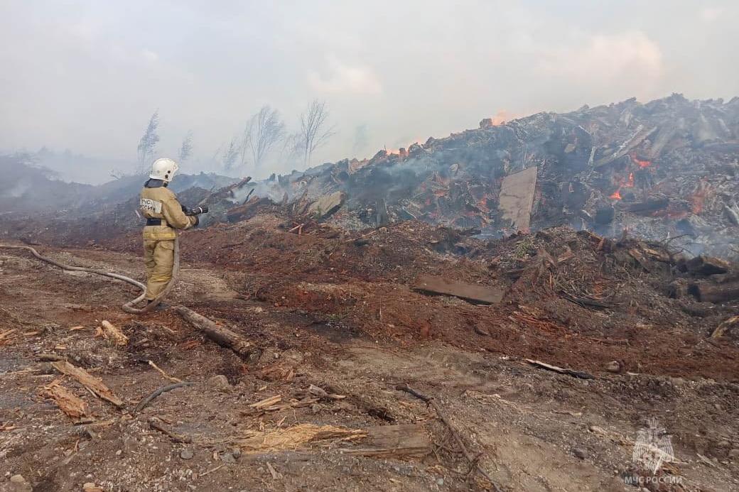 В Бисерти пожарные вторые сутки тушат горящие отходы лесопилки. На данный момент пожар локализован, но справиться с открытым огнем пока не удается.