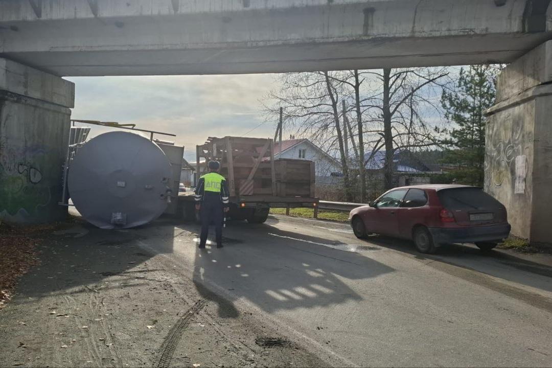 Как уточнили в отделении пропаганды ГИБДД Свердловской области, ДТП произошло днем, в 13:30. Перевернувшаяся цистерна была пустая, а водитель грузовика - трезв.