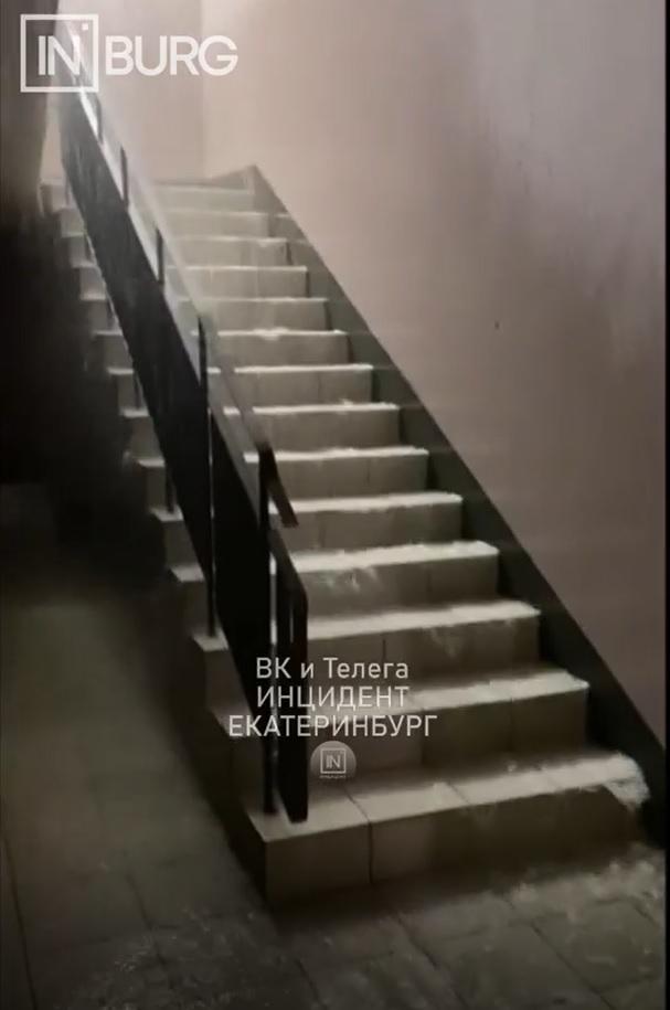 В Верхней Пышме многоэтажку залило горячей водой. По данным Телеграм-канала «Инцидент Екатеринбург», ЧП произошло в ЖК «Петровский». Судя по видео, вода лилась с одного этажа на другой в местах общего пользования. В воде оказались несколько этажей, в том числе лестничные клетки и стоящие на них детские коляски и велосипеды.