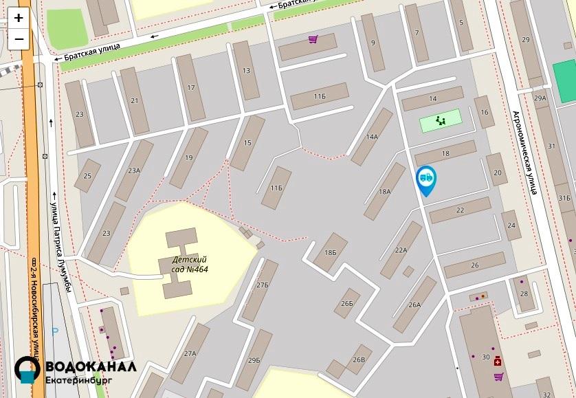 Судя по карте, автоцистерна расположена между домами на Агрономической, 18 и 22.