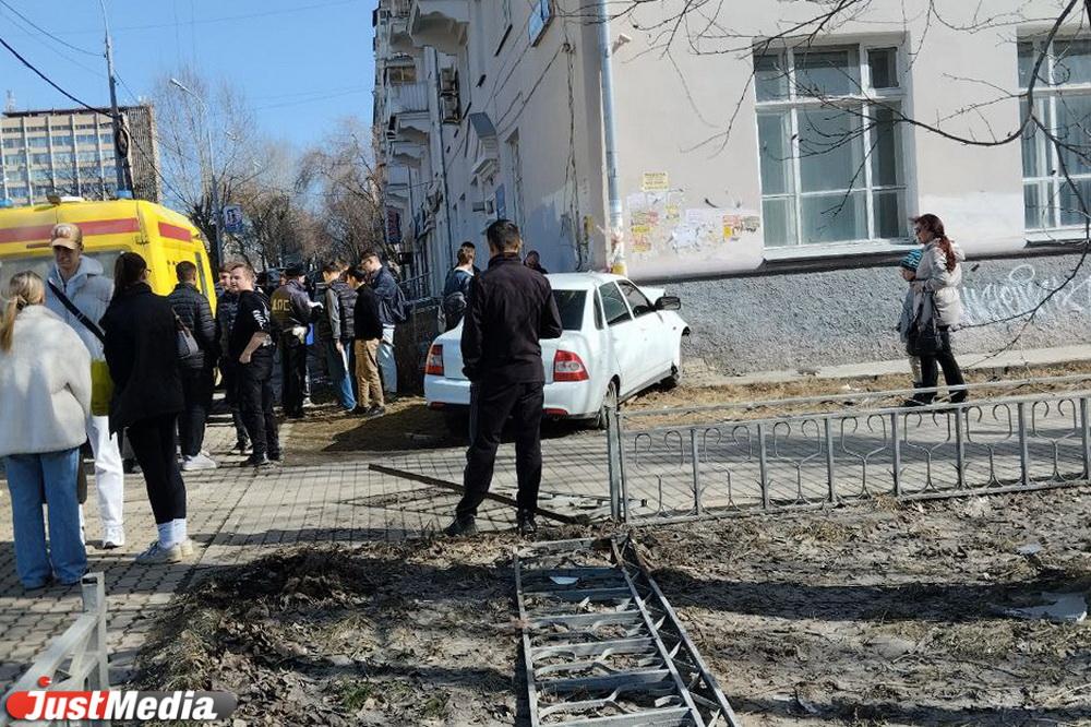 В Екатеринбурге водитель белой «Лады» снес ограждение, вылетел на тротуар, а затем врезался пятиэтажку на Малышева, 128, рассказал JustMedia.ru очевидец происшествия.