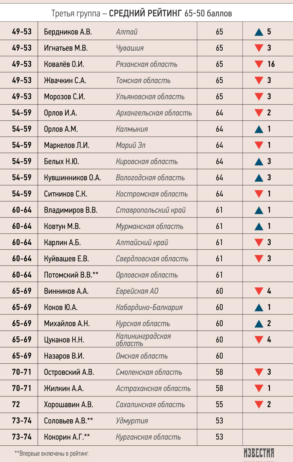 Новый, малоприятный для Евгения Куйвашева, рейтинг эффективности губернаторов публикуют сегодня «Известия». В нем глава региона занял 64-е место, потеряв по сравнению с предыдущим рейтингом еще три пункта.