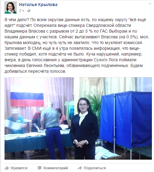 Ранее избирком сообщал о возможной победе коммунистки Натальи Крыловой.