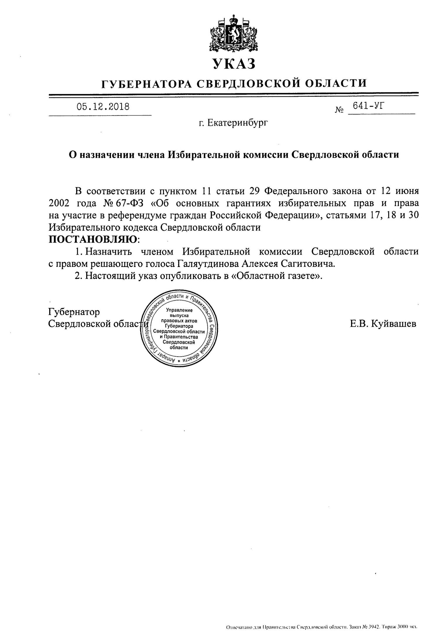 Глава молодежного избиркома Алексей Галяутдинов назначен членом избирательной комиссии Свердловской области с правом решающего голоса. Соответствующий указ подписал губернатор Евгений Куйвашев.
